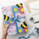 2 hermosas abejas con flores. Alrededor de estas dos abejas son flores de color rosa, púrpura, azul y amarillo. Personalizable completo y hasta puedes personalizarlos. Este colorido diseño de abejas es ideal para los amantes del verano y de las abejas.