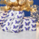 Jewelry, blue, sapphire, sparkling flower butterfly with wing decorated with blue, precious flowers with gold leaves on white background.