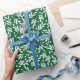 Vestir sus cajas de regalo de vacaciones con nuestro papel de envoltura de vacaciones Holly Berries. El papel de envolvimiento de vacaciones personalizado presenta un patrón verde y blanco de bayas huecas y follaje arbolado.