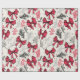 Papel De Regalo Follaje Navideño Vintage Lazos Rojos
