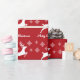 Papel De Regalo Forma de ciervo blanco sobre rojo con copos de nie