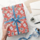 Navidades fotográficos familiares personalizados únicos e inolvidables envueltos en papel. Diseño festivo inspirado en estampado postal con las escenas originales de ilustracion de sellos postales hechos a mano por nuestros Navidades. Cada sello cuenta con un escenario festivo único con marcas de franqueo. "Merry, Love "Joy" mostrado en tipografía de escritura. Personaliza con tres fotos familiares y un monograma. Todas las obras de arte son originales y de dibujos hechos a mano por Moodthology Papery.