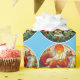 Este diseño vibrante reproduce el aspecto del vidrio manchado y cuenta con un bonito zorro rojo bajo un sol amarillo.