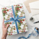 Fiesta del primer cumpleaños de fresa | Hoja de envolver de primer regalo de Berry El diseño presenta fresas acuáticas en el fondo y texto personalizado en forma de fresa. El texto dice Muchas gracias por unirse a la fiesta de cumpleaños.