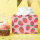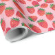 PInk y wtrawberry rojo y papel de tejido floral blanco para artesanías y envoltura de regalo. El diseño dulce rojo, blanco, rosa y verde es ideal para fiestas y eventos de verano.