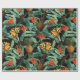 Papel De Regalo Frutas tropicales y selva floral sobre negro