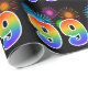 Este divertido y vibrante diseño de papel envuelto presenta un patrón colorido inspirado en fuegos artificiales de celebración, junto con el número "99" que tiene un patrón gradiente multicolor inspirado en el arcoiris, sobre un fondo de color negro. El papel de envolver como este podría ser usado cuando se envuelven regalos o regalos para el 99º cumpleaños de alguien, o tal vez para el noventa y noveno aniversario de una pareja, o algún otro evento del 99º. [~Z0000322]