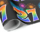 Este divertido y vibrante diseño de papel envuelto presenta un patrón colorido inspirado en fuegos artificiales de celebración, junto con el número "27" que tiene un arcoiris multicolor como patrón gradiente, sobre un fondo de color negro. El envolvimiento de papel como este podría ser usado tal vez cuando se envuelven regalos o regalos para alguien que cumple 27 años, o tal vez para un vigésimo séptimo aniversario de boda de una pareja, o algún otro evento del 27. [~Z0000322]