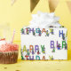 Ratones cortos con ropa colorida con texto de cumpleaños feliz en un cumpleaños blanco. Se puede cambiar el color del fondo blanco.