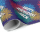 Fun Birthday wrapping paper with fireworks print. Personalized wrapping paper for celebrations. Cheerful design with custom name. Customizable background color. Available in matte and glossy.