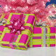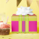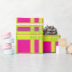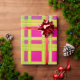 A bright modern take on traditional Christmas plaid gift wrap. This fun festive tartan wrapping paper has layers of bright Christmas colors surrounding hot pink squares. A colorful non-traditional version of a classic holiday pattern that will add your unique merry touch to holiday gifting. Hot pink geometric pattern with bright pear green wide stripes with thin accent stripes in ruby red, jade green, and antique white.