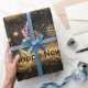 Midnight gold theme blends the allure of night elegance with the celebratory sparkle of overflowing champagne. The gift-wrapping paper features sparkling champagne bottles, fireworks, dark night and liquid gold. Perfect for elegance and grandeur. The text "Happy New Year" can be easily customized. Perfect for a matching theme New Year celebration set.