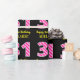 Este divertido diseño de papel de envoltura con temática de cumpleaños presenta un gran número "31" con un patrón de rayas rosa claro y rosa oscuro, junto con el mensaje "Feliz cumpleaños número 31", y un nombre personalizado. El fondo es negro de color. Papel de envoltura con temas de cumpleaños como este podría ser una manera divertida de envolver un regalo o regalo para alguien que esté celebrando su 31 cumpleaños. [~Z0000376]