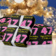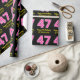 Este divertido diseño de papel de envoltura con temática de cumpleaños presenta un gran número "47", con un patrón de rayas rosa oscuro y rosa claro. También incluye el mensaje "Feliz cumpleaños número 47", y un nombre personalizado. El fondo es negro de color. Papel de envoltura con temas de cumpleaños como este puede ser una manera divertida de envolver un regalo o regalar un regalo para celebrar el cumpleaños número 47 de alguien. [~Z0000376]