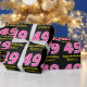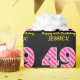 Este divertido diseño de papel de envoltura con temática de cumpleaños presenta un gran número "49" con un patrón de franjas rosa oscuro y rosa claro, junto con el mensaje "Feliz cumpleaños 49", y un nombre personalizado. El fondo es negro de color. Papel envuelto como este puede ser usado cuando se le dan regalos a alguien para celebrar su 49° cumpleaños. [~Z0000376]