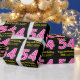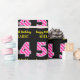 Este divertido diseño de papel de envoltura con temática de cumpleaños incluye un gran número "54" con un patrón de rayas rosa claro y rosa oscuro, junto con el mensaje "Feliz cumpleaños número 54", y un nombre de personalizable. El fondo es negro de color. Papel de envoltura con temas de cumpleaños como este podría ser una manera divertida de envolver un regalo o regalar un regalo para celebrar el cincuenta y cuarto cumpleaños de alguien. [~Z0000376]