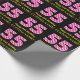 Este divertido diseño de papel de envoltura con temática de cumpleaños presenta un gran número "55", con un patrón de rayas rosa oscuro y rosa claro. También incluye el mensaje "Feliz cumpleaños número 55", y un nombre editable. El fondo es negro de color. Papel de envoltura divertida como este puede ser usado cuando se le dan regalos al envasado a alguien en celebración de su cumpleaños 55. [~Z0000376]