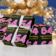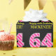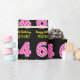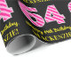 Este divertido diseño de papel de envoltura con temática de cumpleaños presenta un gran número "64" con un patrón de franjas rosa claro y rosa oscuro, junto con el mensaje "Feliz cumpleaños número 64", y un nombre editable. El fondo es negro de color. El papel de envolver como este se puede usar cuando se da un regalo o regalo en honor al cumpleaños 64 de alguien. [~Z0000376]
