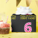 Este divertido diseño de papel de envoltura con temática de cumpleaños presenta un gran número "6" con un patrón de rayas rosas oscuras y rosas claras, junto con el mensaje "Feliz sexto cumpleaños", y un nombre personalizado. El fondo es negro de color. Papel de envoltura divertida como este puede ser usado cuando se le dan regalos al envasado a alguien en celebración de su sexto cumpleaños. [~Z0000376]