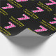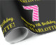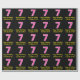 Este divertido diseño de papel de envoltura con temática de cumpleaños presenta un gran número "7", con un patrón de rayas rosa oscuro y rosa claro. También incluye el mensaje "Feliz séptimo cumpleaños", y un nombre personalizado. El fondo es negro de color. Papel de envoltura divertida como este puede ser usado cuando se le dan regalos al envasado a alguien en celebración de su sétimo cumpleaños. [~Z0000376]