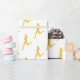 Las características del diseño un modelo de repetición de un corredor en silueta de oro contra un fondo blanco.