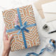 Diseño moderno y original en naranja y crema para un tipo diferente de envoltura de regalo, haga que su regalo se destaque con esta envoltura moderna con motivos geométricos