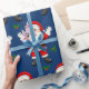 Papel De Regalo Funny Feliz Navidad Personalizado Santa Face Blue