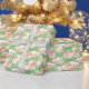 El lindo patrón en este divertido papel envolvente de Navidades contiene imágenes personalizados de naranjas y gatos jengibre blancos en varias posiciones. Un gato lleva una bufanda y un gorra de invierno rojos y blancos. Las imágenes se colocan sobre un fondo verde medio con copos de nieve decorativos blancos. El texto de su personalizado está en verde oscuro. Actualmente dice "Navidades Meowy" pero puede que lo cambies fácilmente.