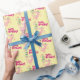 A happy pig on birthday wrapping paper. Use "Personalize this template" to tweak the "Happy Birthday!" text and create a unique, customized message. Paper featuring a gleeful pig, beneath a teetering layer cake with lashings of green icing and topped with pink candles.