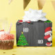 Funny Navidad Santa Claus adorna el diseño con fondo de madera negra. Navidades envolviendo papel
