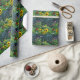 romántico jardín de estilo antiguo con margaritas, cosmos y girasoles, rodeado de pinos blancos.