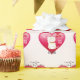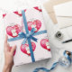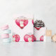Un gato afortunado y humorístico (Maneki Neko) con corazón y globos para El día de San Valentín. Traducción japonesa: "Feliz Día de San Valentín" al principio, "Maneki Neko" al final, "Amor" a la izquierda, y "Suerte" a la derecha en el corazón.