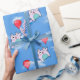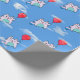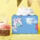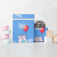 Pequeño gatito rosado con globos rojos flotando en nubes. Se puede cambiar el color del cielo.
