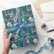 Envolvente papel azul y blanco adornado con deliciosos ilustraciones de gatos, ideal para envolver regalos con estilo.