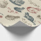 Patrón de gato vintage en un fondo beige con curliceos. Los gatos son del libro Nuestros gatos de Weir, 1892, cortesía del Proyecto Gutenberg.