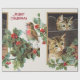 Tarjeta de saludo de vacaciones para gatos y navidades de aves de época
