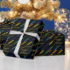 A gift presentation as memorable as what's inside — this wrapping paper features a tiled pattern of the signature diagonal rainbow stripes on black with "Congratulations" in flowing gold calligraphy woven throughout. For guests and loved ones who want their gift to arrive in style, making an impression before it's even opened.