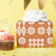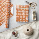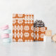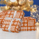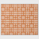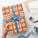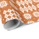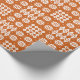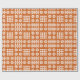 Un rollo del papel de embalaje muy elegante, con un modelo de los adornos tradicionales de la tapicería Galés en blanco en un fondo del rojo de ladrillo.