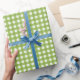 Papel envolvente de primavera en una paleta suave y refrescante de color verde claro y blanco, dispuesto en una rejilla a cuadros espaciados de manera uniforme para un aspecto atemporal y alegre. Perfecto para añadir un toque de encanto de primavera a cualquier regalo, este papel envolvente exuda calidez y simplicidad, lo que lo hace ideal para cumpleaños, Pascua o cualquier ocasión que celebre la renovación y la alegría.