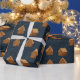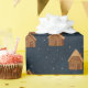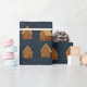 Cozy wrapping paper featuring a repeating gingerbread house pattern on a deep blue background with subtle snowy details. The design feels warm, calm, and timeless, inspired by winter evenings, handmade treats, and storybook villages.