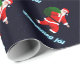 ¿Crees en Santa? Una imagen de un Papá Noel en zancadas, llevando una bolsa verde de regalos; superpuesta en un fondo estrellado. El texto islandés que dice "Gleðileg jól" (Feliz Navidad) aparece en azul brillante y blanco.