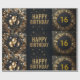 Haz que tu regalo se destaque con este papel de regalo de cumpleaños elegante, moderno y personalizable. El diseño presenta un patrón lujoso de texto "FELIZ CUMPLEAÑOS", globos brillantes y el número personalizable "16" sobre un fondo negro sofisticado con efectos de destellos dorados y explosiones de estrellas. Este envoltorio único añade un toque de alta gama y glamour a cualquier regalo y es perfecto para cualquier celebración de cumpleaños.