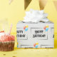 Marco 3D con texto de cumpleaños feliz y globos fiestas en un fondo gris. Se puede cambiar el color de fondo.