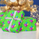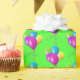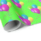 Balón de cumpleaños colorido con cintas sobre fondo verde neón. El color de fondo se puede editar.