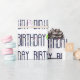 Texto contemporáneo de cumpleaños en blanco con globos fiestas y confetti colorido. Se puede cambiar el color de fondo.