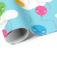 Modelo colorido de los globos felices que flotan en un cielo azul nublado.