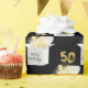 Globos de fiesta de oro, cintas y brillantes vigas de luz en una caja blanca en negro por 50 años. Se puede cambiar el color de fondo negro.
