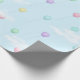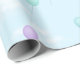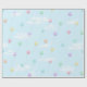 Este diseño de papel de regalo alegre tiene globos de colores pastel volando a través de un cielo azul lleno de nubes blancas esponjosas.