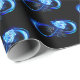 Luminous infinity symbol with glowing, beautiful, lushly blooming rose made of blue flames on black background.