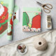 Diseño gráfico navidad del dibujo animado lindo del gnomo de tres. Vestido en verde y rojo para separar la alegría del día de fiesta del navidad, colocándose delante de los árboles de navidad con las bayas del acebo. El color de fondo verde claro se puede modificar para requisitos particulares y cambiar a cualquier color que usted elija.